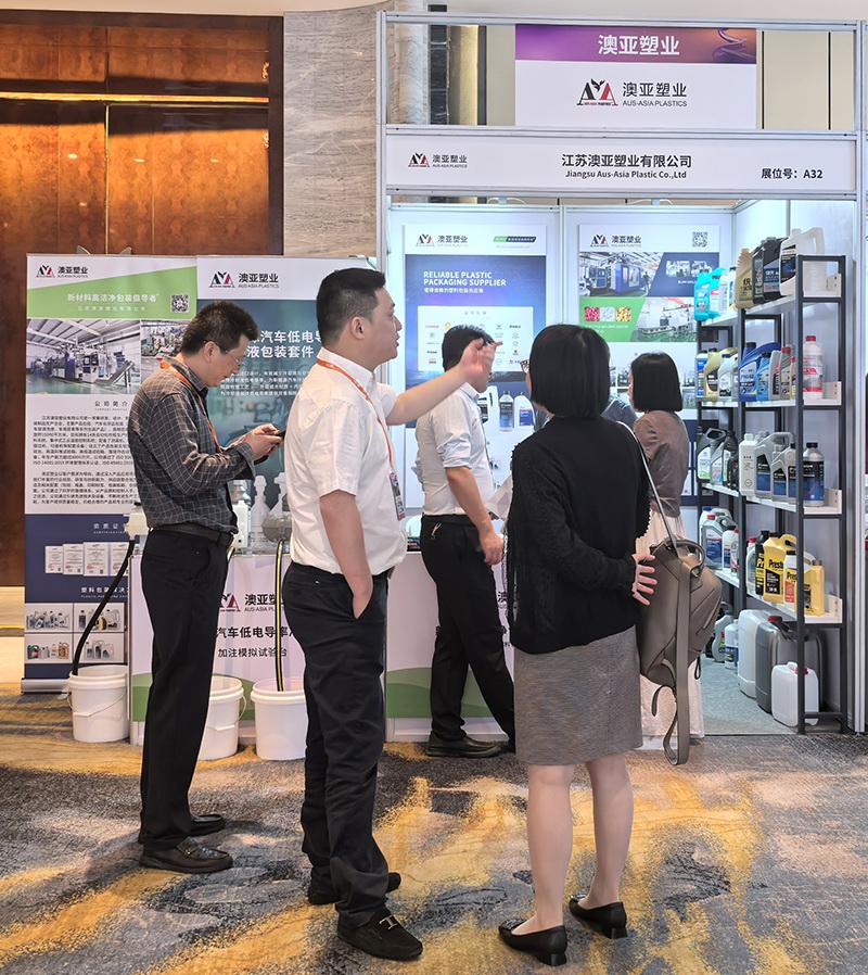此外,澳亞塑業還展示了其他一係列針對汽車化學品設計的包裝解決(jué)方案,這些產品不僅滿足了市場對高性能(néng)、高安全性的要求,同時也體(tǐ)現了澳亞塑業在綠色、環(huán)保方(fāng)麵的(de)持續努力。展會現場,澳亞塑業總經理王健和與會嘉(jiā)賓及業內同仁進(jìn)行了深入的交流與(yǔ)探討,共同探討了包裝產業(yè)的未來發展趨勢和(hé)技術創新方向(xiàng),助力實現包裝(zhuāng)產業(yè)品質化、創新化、綠色化(huà)發展之路。