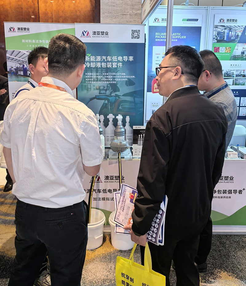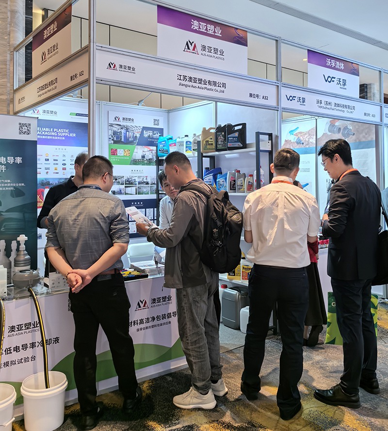 展會期間,澳亞展台吸引了眾多業內人士(shì)的關(guān)注,更有不少嘉賓對澳(ào)亞(yà)塑業展示的新能源汽車低電導率冷卻液(yè)包裝套件表現出了濃厚興趣;該產品是專為新能源汽車冷卻液包裝與加注而設(shè)計(jì)開發,為新能源汽車冷卻液(yè)保持低電導率和安全加(jiā)注提供了創新的解決方案。